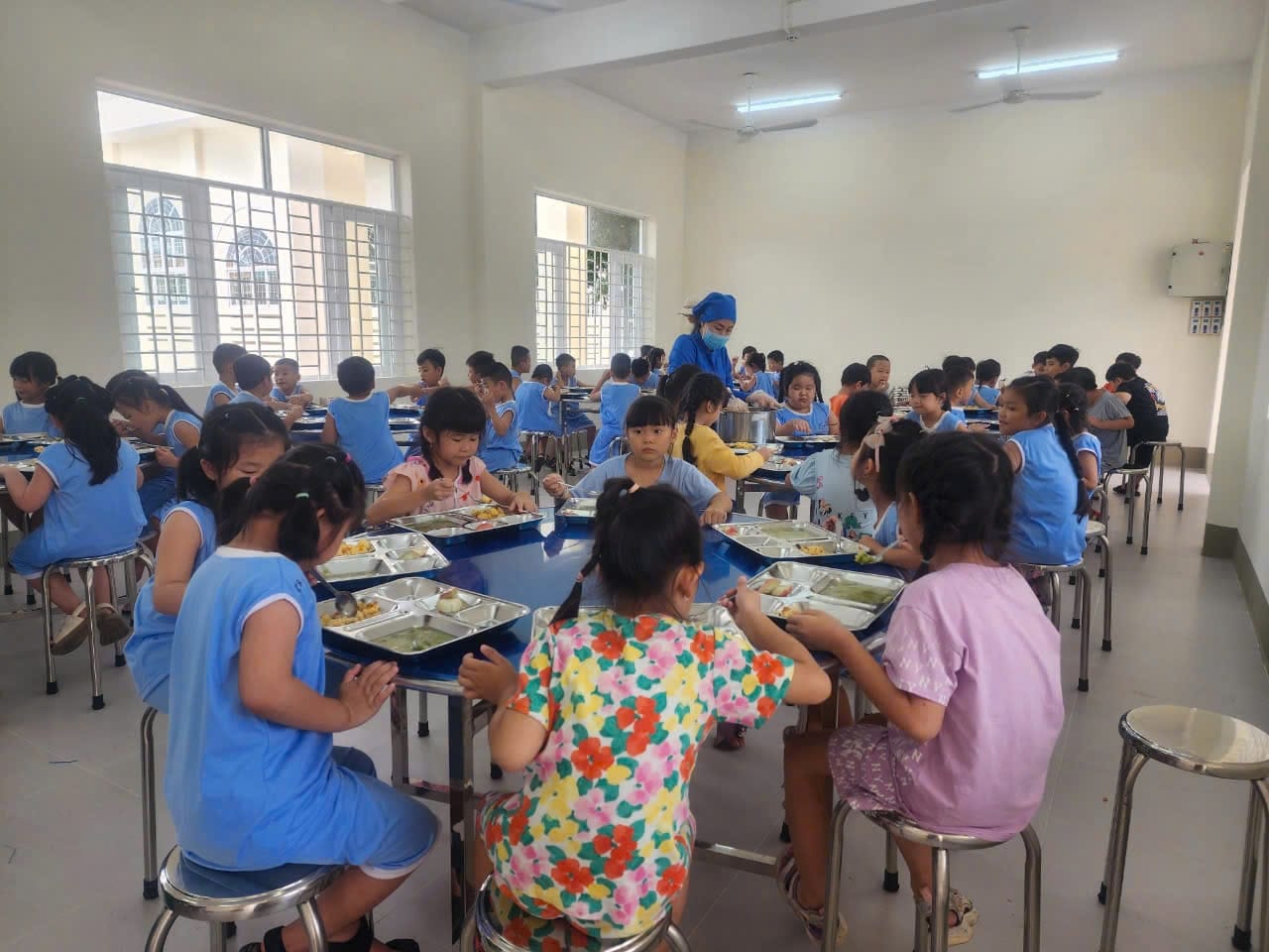 Với nội quy quy định rõ ràng về việc thực hiện bán trú, nhà trường thường xuyên nhắc nhở và rèn luyện cho các em học sinh về nề nếp, thói quen, tính kỷ luật và tăng khả năng tự lập. Đội ngũ phụ trách bán trú chăm sóc chu đáo từng học sinh từ bữa ăn đến giấc ngủ, đảm bảo các em được ăn đủ chất và ngon miệng, ngủ ngon giấc để đảm bảo sức khỏe, giúp các em học tốt trong buổi học thứ hai.